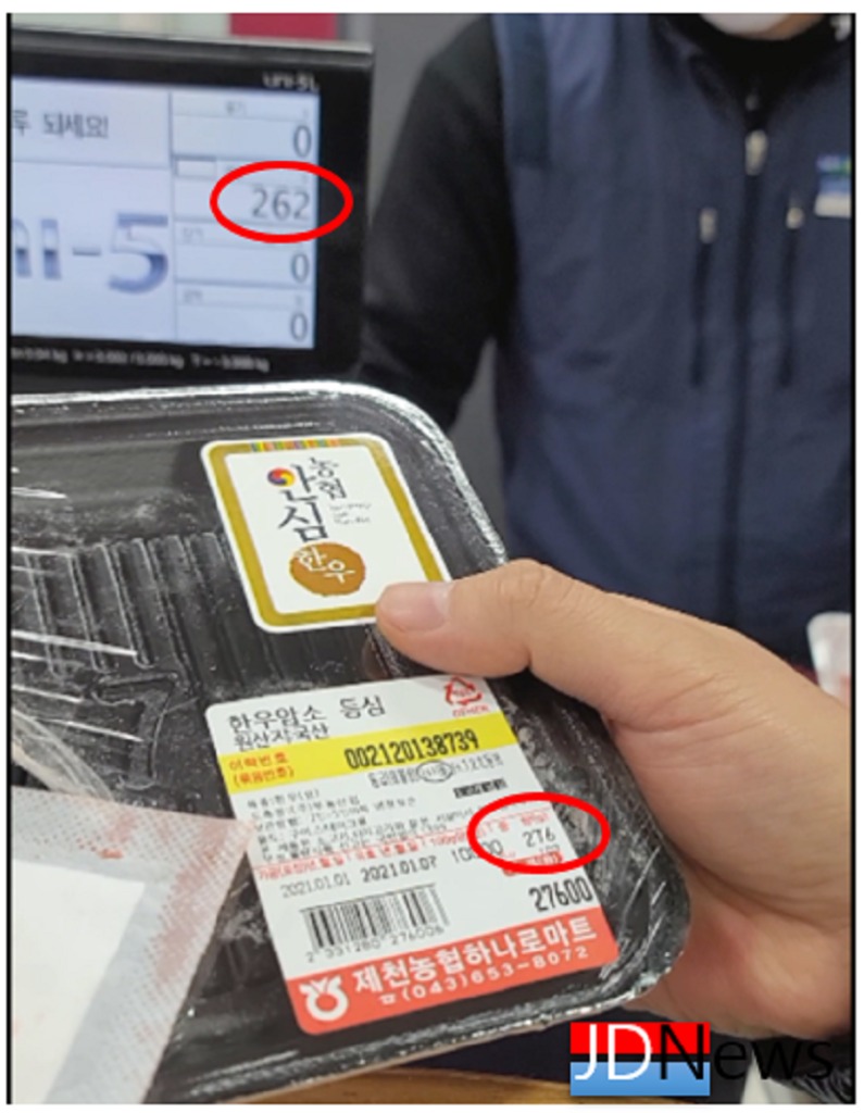 JD News 이용희 기자 =충북 제천농협(조합장 김학수)이 운영하는 의림동 농협하나로 마트 정육 판매대에서 쇠고기·돼지고기 판매 중량을 속여 부당이득을 취해오다 소비자에 의해 발각돼 제천시에 시정명령 행정처분을 받았다.