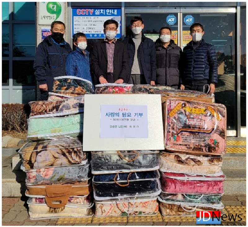 JD News 이용희 기자 = 단양군 영춘면 남천2리 최영선 이장은 영춘면사무소를 찾아 생활이 어려운 취약계층의 추위를 녹일 수 있도록 사용해 달라며 사랑의 담요 50장(130만원 상당)을 전달했다.