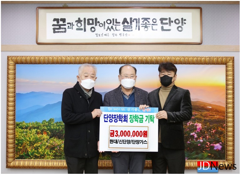 지난달 29일에는 현대, 신단양, 단양가스 충전소(대표 이종원, 조정환, 이승영)에서 300만원의 장학금을 기탁했으며, ㈜엔씨씨(대표 송건용)에서도 장학회에 500만원의 장학금을 기탁했다.