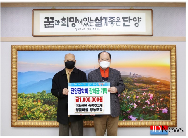 같은 날 국립공원 죽령옛고개 명품마을 영농조합(대표 노성한)에서도 100만원의 장학금을 장학회에 전달했다.