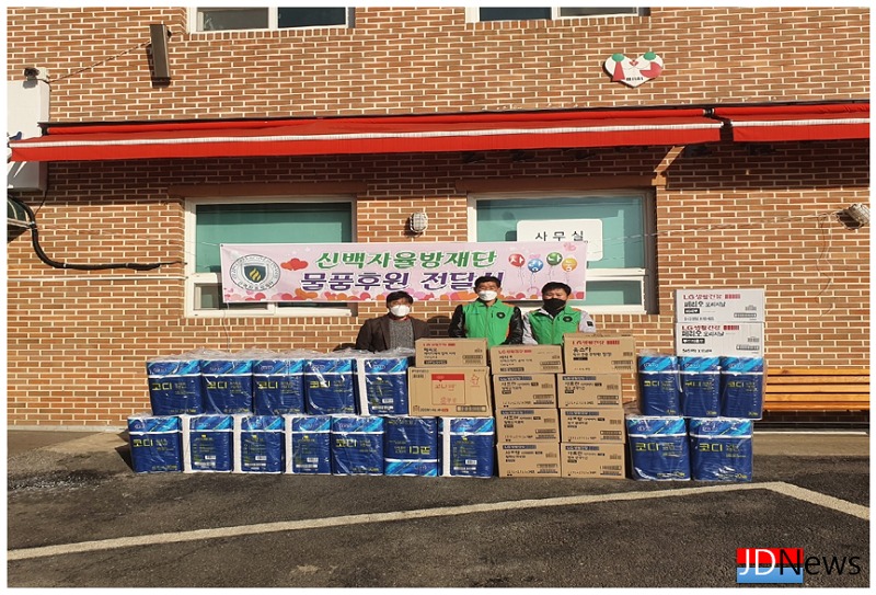 JD News 이용희 기자 = 신백동 자율방재단(단장 손영환)은 지난 20일, 중증장애인 시설인 밀알한마음쉼터를 방문하여 100만원 상당의 생활필수품을 기탁 하였다.