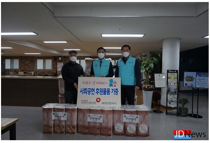 JD News 이용희 기자 = “국민건강보험공단 제천단양지사(지사장 이상권)”는 2021년 1월 26일 설 명절을 맞이하여 장애인 시설인 살레시오의 집(원장 김영만)에서 생활필수품을 전달하는 나눔 활동을 실시하였다.