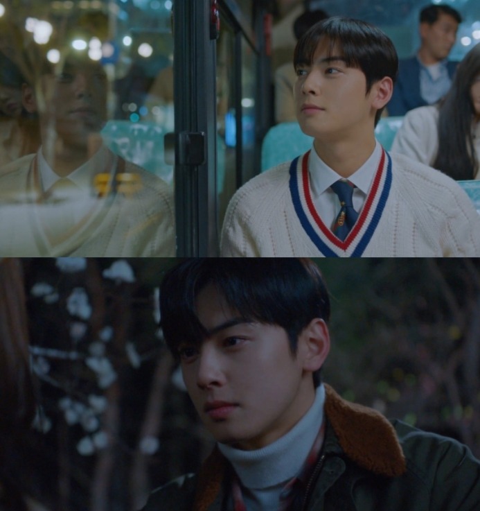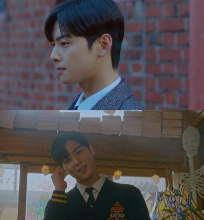 첫 등장부터 저세상 까칠함으로 보는 이들을 얼어붙게 만들었던 수호는 2회 엔딩에서 미묘한 반전 매력을 드러내 설렘 지수를 끌어올렸다. 교실에서 우연한 사고로 얼굴이 케이크 범벅 된 주경이 친구들에게 민낯을 들킬까 봐 걱정하던 그때, 수호가 백마 탄 왕자처럼 등장해 교복 재킷으로 주경의 얼굴을 감쌌다. 이 장면에서 차은우는 차갑게만 보이던 캐릭터 뒤에 감춰져 있던 따뜻한 배려심을 담백하게 연기하며 시청자들의 흐뭇한 미소를 자아냈다.