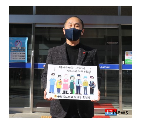 JD News 유소진 기자 = 충청북도의회 오영탁 부의장은 2일 보건의료, 돌봄, 환경미화, 운송, 배달 등 필수노동자의 헌신에 감사함을 전하는 “고맙습니다, 필수노동자” 캠페인에 참여했다.
