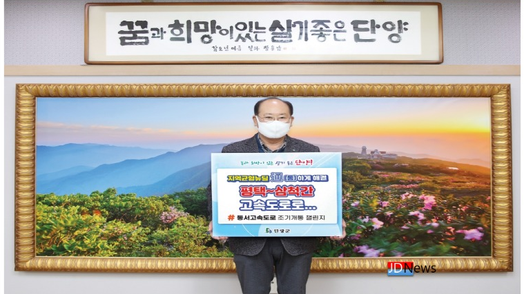 JD News 유소진 기자 = 류한우 단양군수가 국가균형발전의 염원을 담아 ‘동서고속도로 조기 개통’ 챌린지에 동참하며, 전 국민적 공감대 형성 필요성을 강조했다.