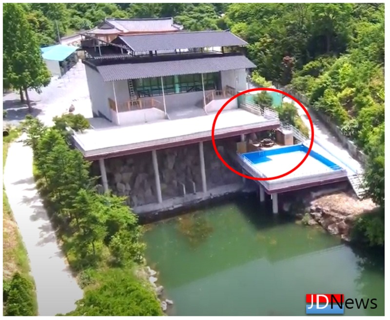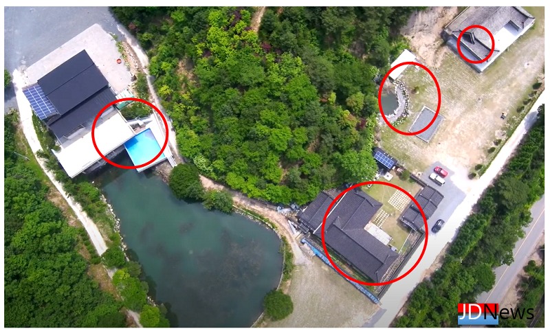 그리고 2011년~2014년 사이 유지(저수지, 호수 등과 같이 물이 고여 있는 토지) 2,129㎡ 중 일부에 불법으로 신축 구조물을 만들어 사용했고, 이 불법 구조물 바로 옆에 건축허가를 받아 2층 건물을 지난 2017년에 건축했다.