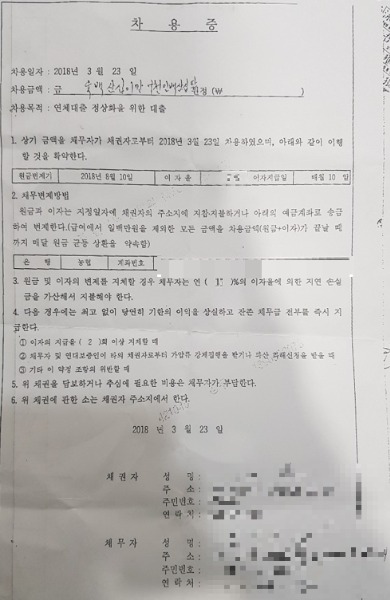 24일 농협 관계자에 따르면 지난 2018년 농협 연체자인 B씨에게 농협 대부계 직원 A씨가 630만원을 빌려주어 농협 연체를 상환해주는 조건으로 원금과 이자를 받는 이중 계약서를 작성한 사실이 밝혀졌다.