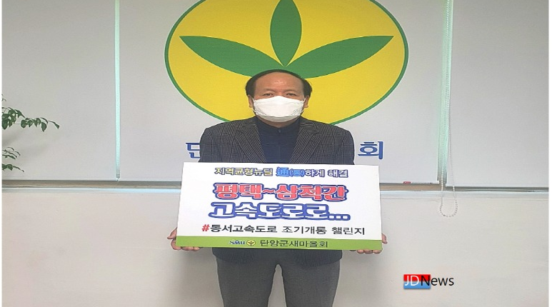 JD News 유소진 기자 = 단양군새마을회에서 오수원 단양군 새마을회장이 균형발전 염원을 담은 ‘동서고속도로 조기 개통’ 챌린지에 오늘 25일 동참했다.