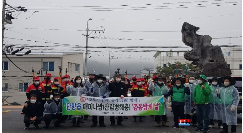 JD News 유소진 기자 = 단양군 단양읍은 민·관이 함께 대응하는 ‘산림병해충(매미나방) 공동방제의 날’ 운영에 따라 지난 5일 단양 공설운동장에서 발대식을 진행했다.