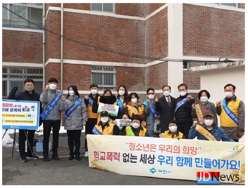 JD News 이용희 기자 = 한국청소년육성회 제천지구회(회장 한종석)는 지난 4일 제천고등학교에서 제천시, 제천경찰서 관계자들과 함께 학교폭력예방을 위한 등굣길 캠페인을 실시하였다.