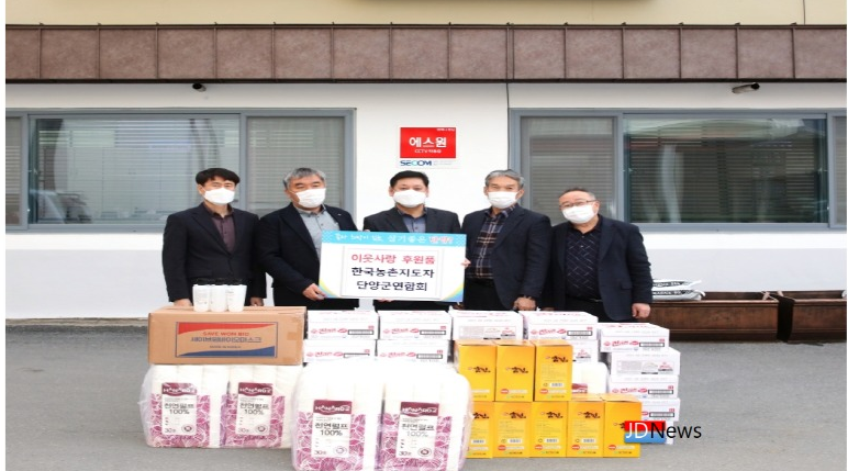 JD News 유소진 기자 = 단양군, 한국농촌지도자 단양군연합회에서 지난 9일 신종코로나바이러스-19로 어려움을 겪는 이웃들을 위해 후원물품을 전달했다.
