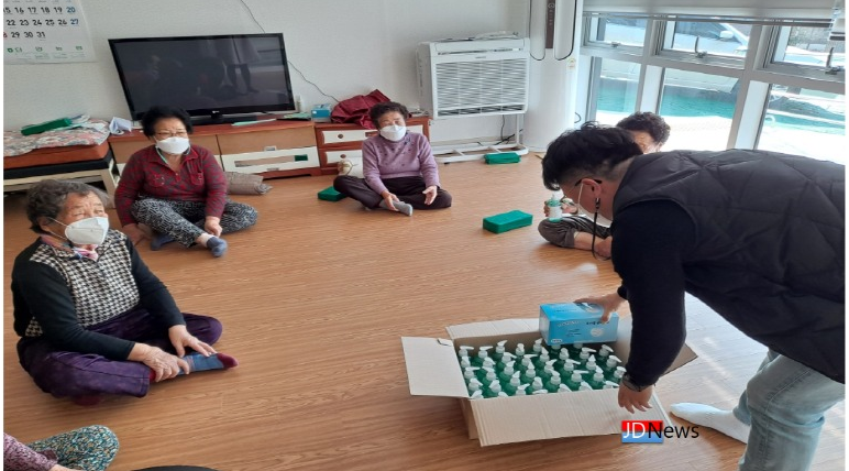 - 각 경로당에 손 소독제 40개와 마스크 100장의 방역물품을 배부