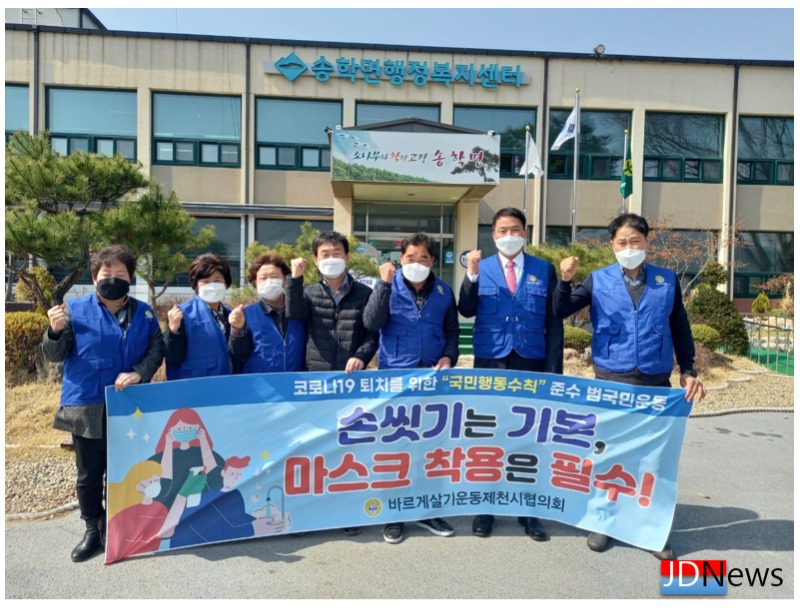 JD News 이용희 기자 = 바르게살기운동제천시협의회(회장 김회원)는 ‘코로나19로부터 안전한 제천 지키기 캠페인’의 일환으로, 3월 말까지 관내 17개 읍면동을 순회하며 바르게살기 회원들을 만나 안전문화운동을 전개하고 있다.