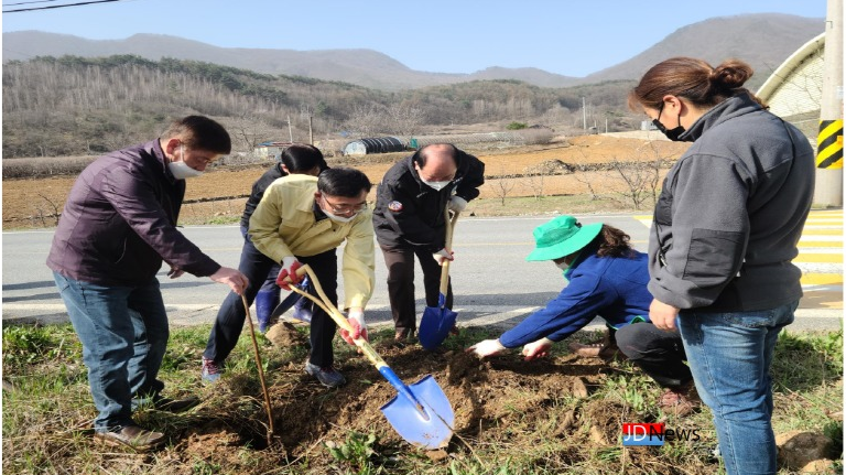 JD News 유소진 기자 = 단양군 적성면에서 지난달 30일 상리 상학주차장 일원에서 아름다운 감골 만들기의 일환으로 감나무 식재행사를 진행했다.