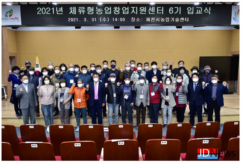 JD News 이용희 기자 = 제천시는 31일 제천시 농업기술센터 교육장에서 2021년 체류형 농업창업지원센터 제6기 입교식을 개최하였다.
