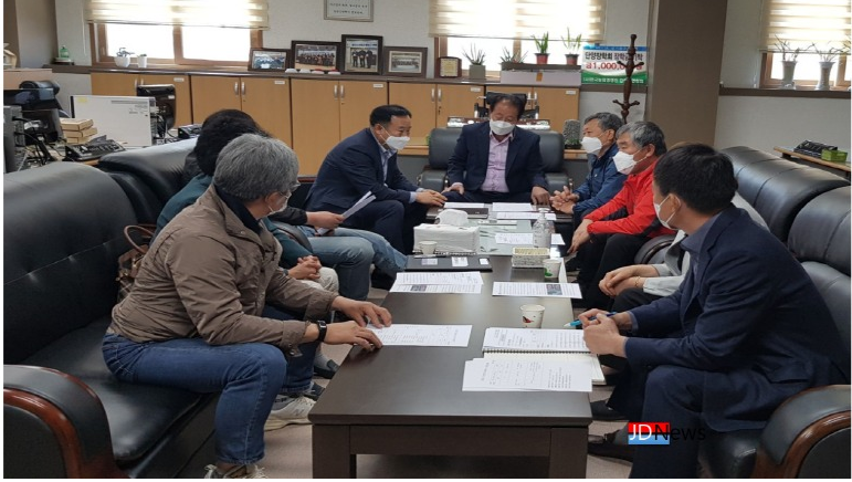 군 농업축산과장과 조무형 회장을 비롯한 10여명의 임원들은 농업인복지회관에 모여 회의를 개최했으며, 2021년 사업 중 현장 교육과 선진지 견학 등 배정된 예산을 만장일치로 반납하기로 결정했다.