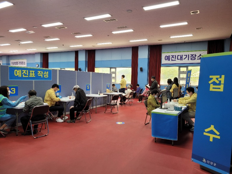 첫날인 22일은 단양읍 접종 예약자 250명 중 201명에 대해 접종을 완료했으며, 군은 우선 오는 28일까지 단양읍과 매포읍 75세 이상 어르신 1220명을 대상으로 화이자 백신을 접종할 계획이다.