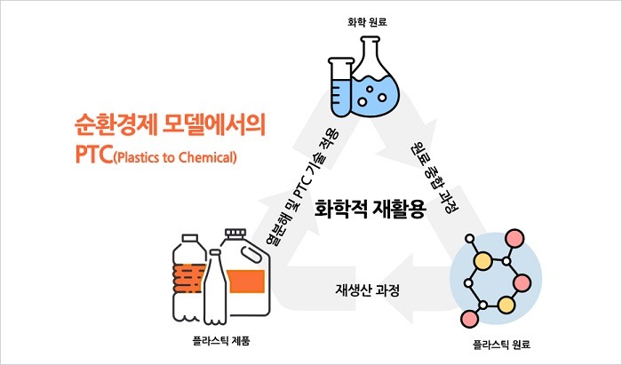 이번 과제는 폐플라스틱을 고온에서 분해한 열분해유에서 불순물을 제거하고 분자 구조를 변화시켜 나프타(납사)를 생산하는 기술(PTC·Plastic to Chemicals) 개발이 목표다. 폐플라스틱에서 생산한 나프타를 납사분해설비(NCC)를 통해 에틸렌과 프로필렌 등 플라스틱 기초 원료로 다시 생산하면 플라스틱의 반복 사용이 가능한 순환경제를 구축할 수 있다.