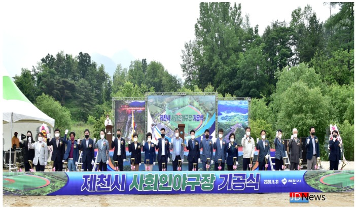 이 날, 기공식에는 이상천 제천시장과 배동만 제천시의회 의장을 비롯해 시·도의원, 전제국 시 야구협회장, 송학면 주민 등이 참석한 가운데 신종 코로나바이러스 감염증(코로나19) 사회적거리두기 지침에 따라 방역관리를 철저히 준수하며 진행됐다.