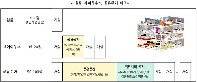- 공유주거는 도심 내 청년 주거난을 해소...조정회의 거쳐 세대 내 침실 3개까지 설치 허용