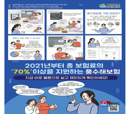 또한 재해취약지역 내 가구, 기초생활수급자, 차상위계층은 보험료 100%를 지원받을 수 있으며 가까운 읍·면·동 행정복지센터에서 신청하면 된다.