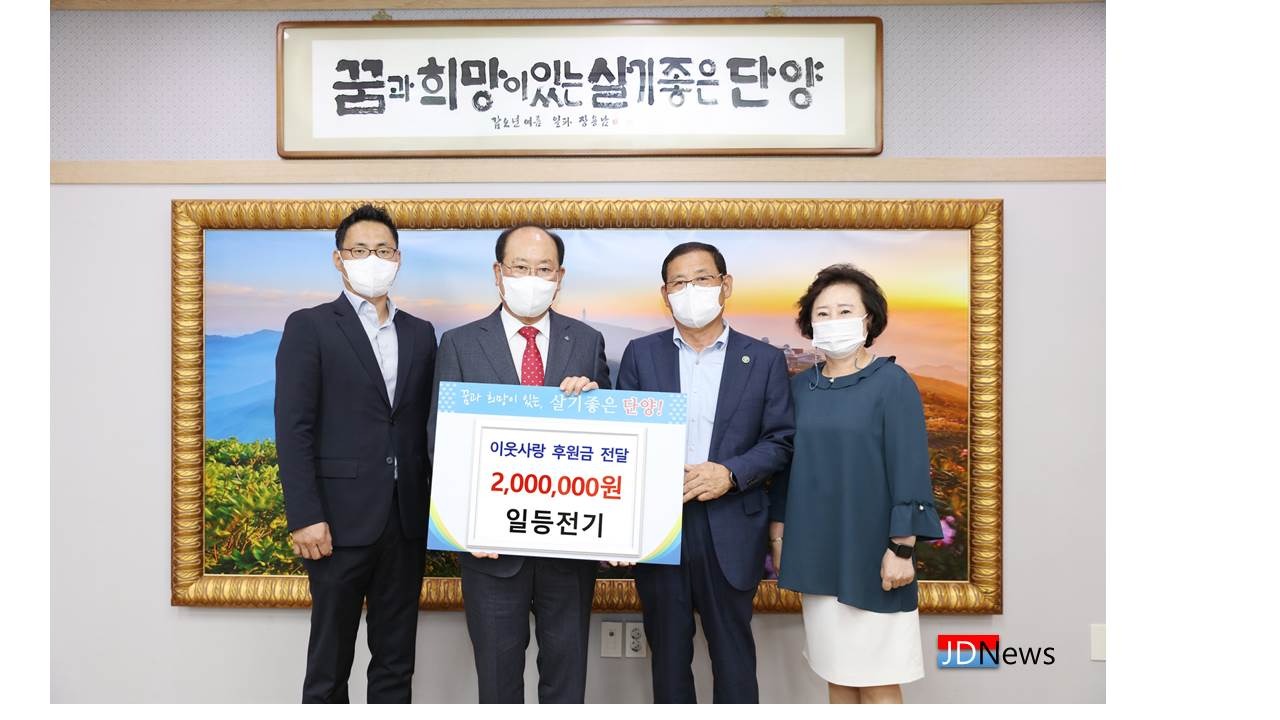같은 날 주식회사 일등전기(대표 안연근)에서도 관내 취약계층 지원을 위해 사용해 달라며 후원금 200만원을 기탁했다.