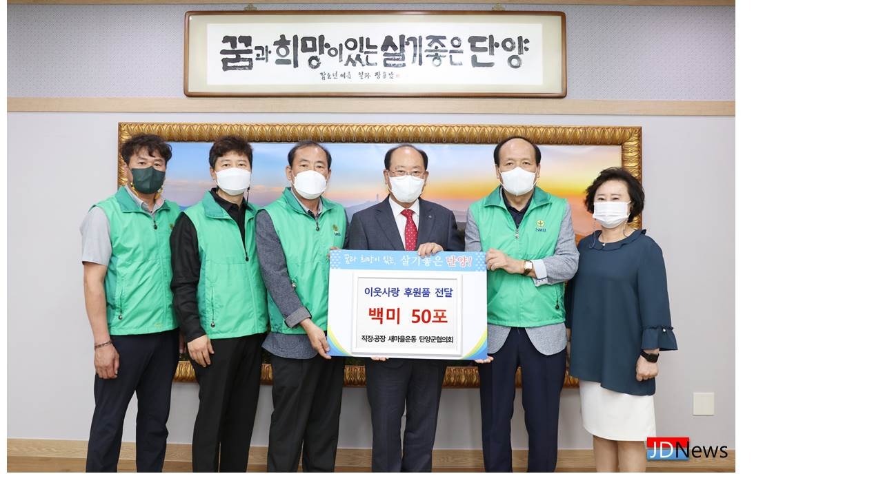 지난 15일 직장·공장 새마을운동 단양군협의회(회장 오창수)는 추석 명절을 맞아 어려움이 가중되는 취약계층을 위해 사용해 달라며 백미(10kg) 50포(175만원 상당)를 전달했다고 밝혔다.