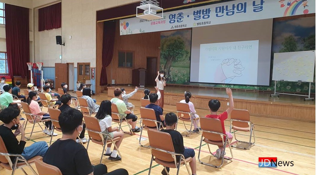 JD News 김경훈기자 = 영춘초등학교(교장 김남형)와 별방초등학교(교장 권미경)는 9월 17일(금) 영춘∙별방 만남의 날로 작가와의 만남 행사를 가졌다.