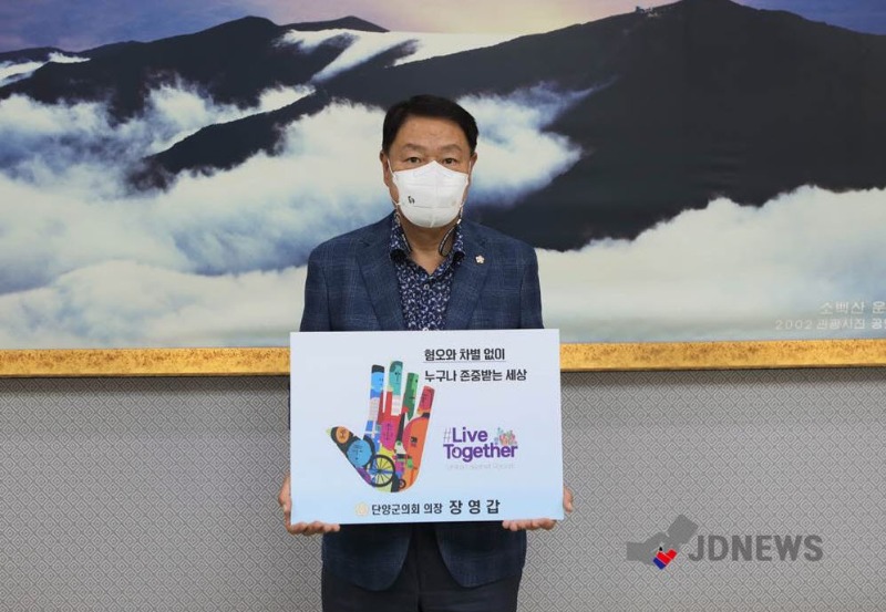 JD News 석의환기자 = 충북 단양군의회 장영갑 의장이 9월 24일 인종차별 반대 글로벌 캠페인인 ‘리브 투게더’(Live Together) 캠페인에 동참했다.