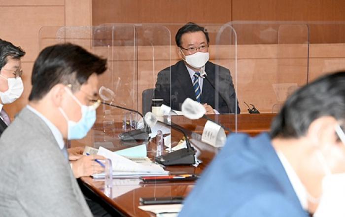 ▲ 김부겸 국무총리가 10일 정부세종청사에서 열린 코로나19 중대본 회의를 주재하고 있다.JD News 유소진 기자 = 김부겸 국무총리는 10일 지난주 발표한 방역기준 조정과 관련해 “정부가 백신접종률과 자영업자의 고통 그리고 두 번이나 고향방문을 자제해 주신 국민들의