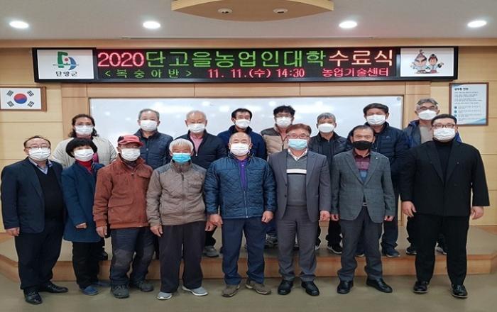 ▲ 수료식(제천=Jd News) 이용희 기자 =단양군농업기술센터(소장 박정현)는 센터 회의실에서 ‘2020년 단고을농업인대학(복숭아반)’의 수료식을 가졌다고 지난 16일 밝혔다.군 농업기술센터는 지난 5월부터 명품 단양복숭아 재배를 목표로 30명의 교육생을 선