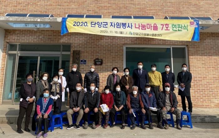 (제천=Jd News) 이용희 기자 = 단양군자원봉사센터(센터장 심옥화)는 지난 16일 가곡면 대대2리 마을회관에서 “나눔마을 7호 현판식”을 개최했다고 밝혔다.지난 2015년부터 시작돼 자원봉사자들의 다양한 재능 나눔을 통해 생활환경 개선과 공동체 의식 회복