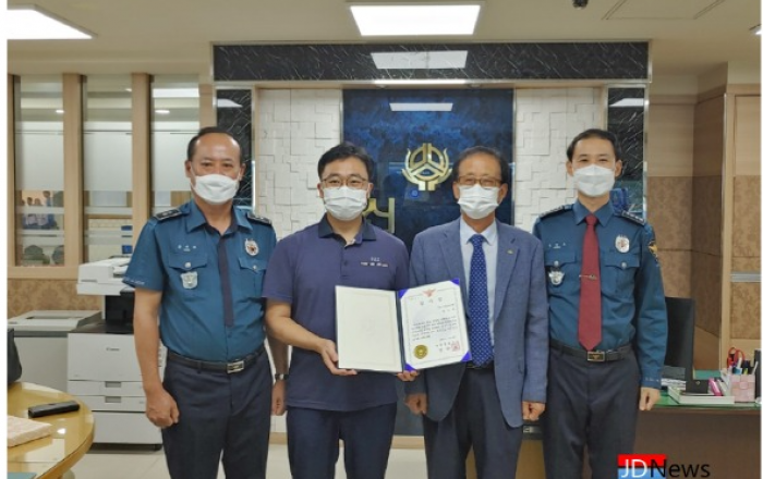 ▲ 매포신협 직원이 전화금융사기 피해를 사전에 예방한 유공으로 감사장과 포상금을 지급받았다.JD News 유소진 기자 = 단양경찰서(서장 정관호)가 매포신협을 방문해 전화금융사기(보이스피싱) 예방에 기여한 직원에게 경찰서장 감사장을 수여했다.6일 단양경찰서에 따르면 지