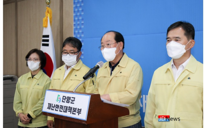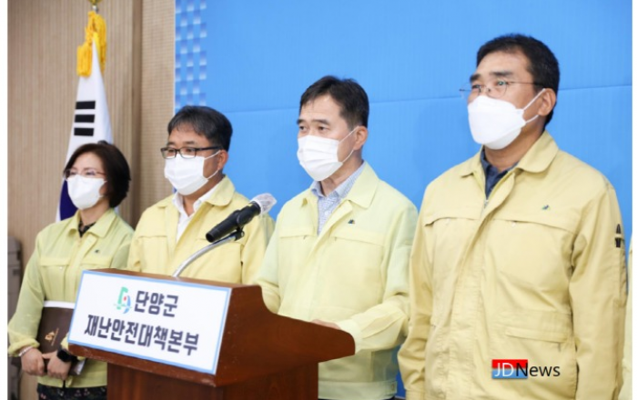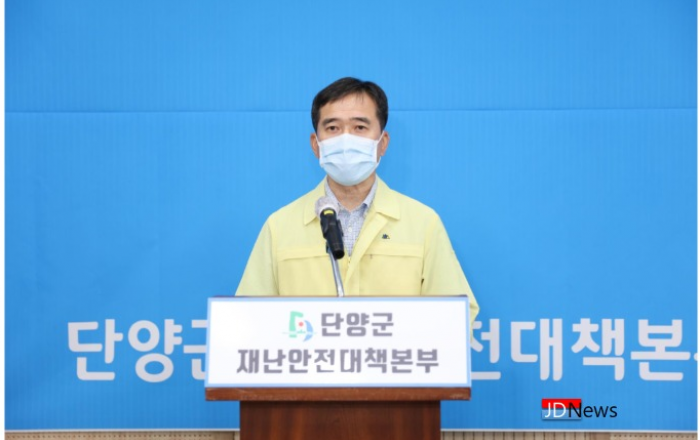▲ 금일 오전 11시 30분경 단양군 소백산국립공원 북부사무소 관련 추가 확진자 4명이 발생돼 박대순 단양부군수가 긴급 브리핑 발표에 나섰다.JD News 유소진 기자 = 20일 단양군 소백산국립공원 북부사무소 관련 신종 코로나바이러스 감염증(코로나19)확진 추가 4명
