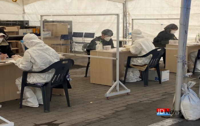 ▲ 단양군 선별진료소 모습JD News 유소진 기자 = 단양군 소백산국립공원 북부사무소 집단감염 발생 이후 지역내 신종 코로나바이러스 감염증(코로나19) 확산세가 심상치 않다.24일 단양군에 따르면 지난 23일 선별진료소를 통해 158명의 검체 검사를 진행했으며, 소백