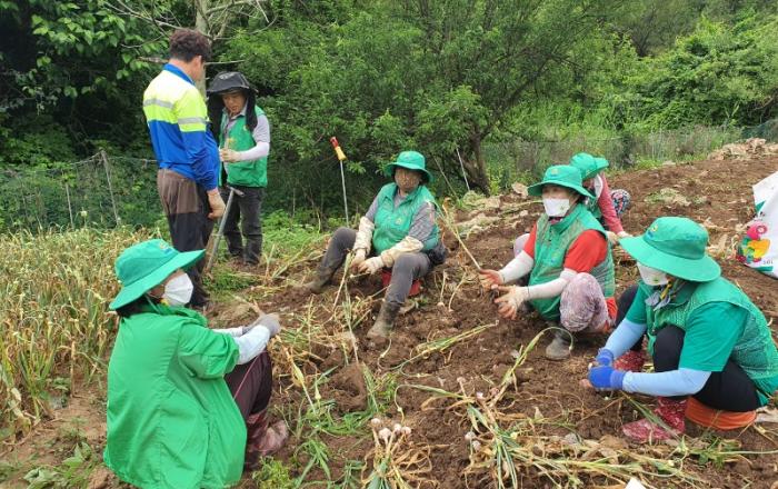▲ 지난해 단양군새마을회, 매포읍 마늘농가 수확 일손봉사 모습충북 단양군이 본격적인 영농철을 앞두고 지역내 농가와 제조 분야 중소기업의 근심을 덜기 위해 생산적 일손 봉사 사업을 통한 인력 지원에 본격 시동을 건다.15일 단양군에 따르면 올해 2억 5,400만원(도비