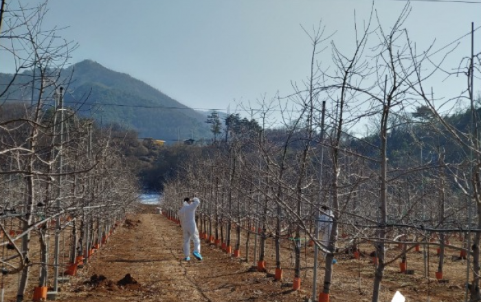 ▲ 과수화상병 예찰 모습 충북 단양군농업기술센터가 과수화상병의 지역내 추가 확산 피해 방지를 위해 정밀예찰 활동을 강화한다.16일 단양농업기술센터에 따르면 오는 20일까지 17명의 예찰단을 운영해 지역내 33개 과수농가 31.9ha를 대상으로 과수화상병 및 가