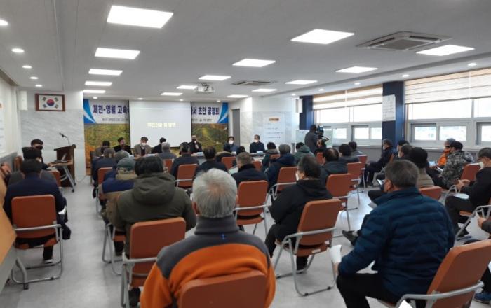 ▲ 주민공청회 모습충북 단양군 어상천면 주민들이 제천∼영월 고속국도 ‘어상천IC 설치’를 위해 목소리를 높였다.23일 단양군에 따르면 한국도로공사 주관으로 지난 22일 어상천면사무소 2층에서 국토부, 한국도로공사 관계자와 지역주민 등 80여명 참석한 가운데 주