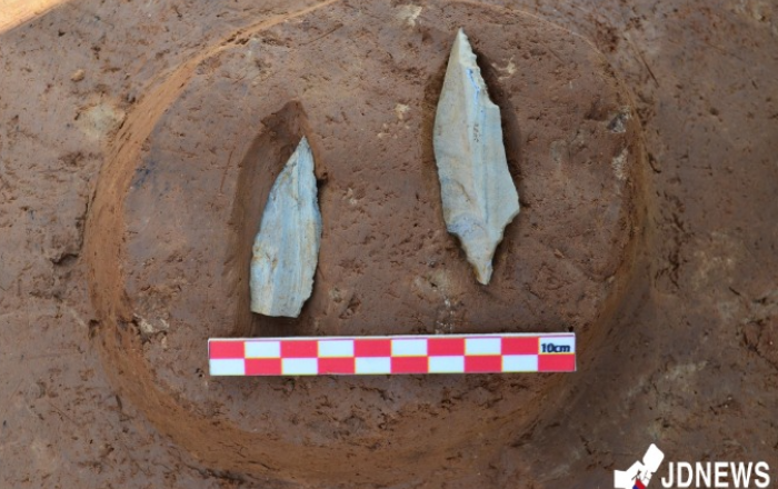 ▲ 슴베찌르개 출토 모습충북 단양군에서 최근 발굴된 슴베찌르개가 후기 구석기 시대 세계 最古 유물로 주목받으며, 유네스코 세계지질공원 인증에도 기대감을 높이고 있다.27일 단양군에 따르면 지난해 12월 탄소연대 측정 분야의 권위 있는 국제학술지인 ‘라디오 카본