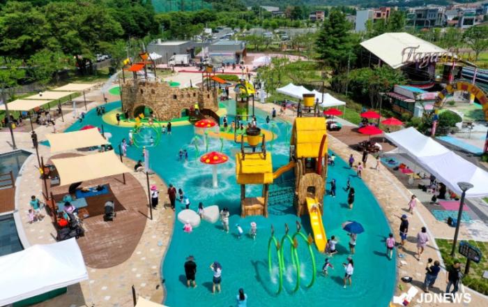 ▲ 의림지 수리공원 물놀이장 전경 제천시가 1일 의림지 수리공원 물놀이장 개장식을 열고 본격적인 운영에 들어갔다.이 날 개장식에는 김창규 제천시장, 엄태영 국회의원, 이정임 제천시의장 및 시의원 등 내빈이 참석한 가운데, 물놀이를 즐기려는 아이들 및 시민들로