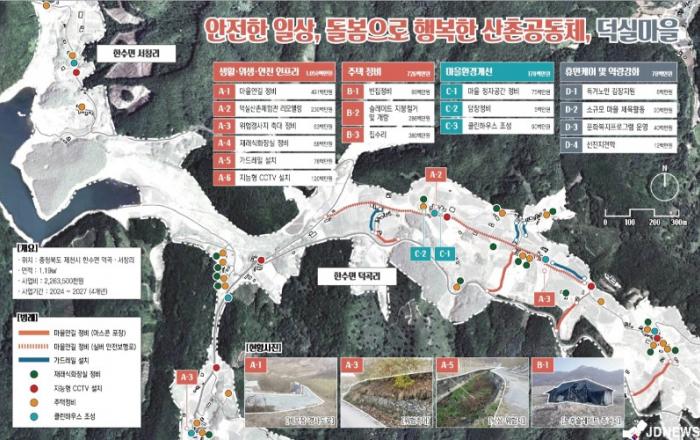 ▲ 한수면 덕곡‧서창리 취약지역 생활여건 개조사업공모 선정제천시 한수면 덕곡‧서창리가 농림축산식품부 주관‘2024년 농어촌 취약지역 생활여건 개조사업’공모에 최종 선정됐다고 12일 밝혔다.사업대상지는 제천시 한수면 덕곡리‧서창리 일원(1.19㎢)이다. 시는 2024년부