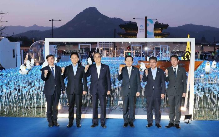 2030부산세계박람회(부산엑스포) 유치를 기원하는 ‘광화에서 빛;나이다’ 점등식이 30일 오후 서울 광화문광장에서 열렸다. 이번 행사는 세계 3대 메가이벤트인 월드엑스포 유치 한국 실사를 앞두고 대한민국 국민들의 엑스포 유치 열망을 국내외에 알리기 위해 기획했다.