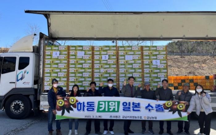 경남 하동군은 지난 2일 금남면 대치리 금남키위영농조합법인 선별장에서 올들어 하동산 참다래(키위) 첫 선적 행사를 가졌다고 3일 밝혔다. 이날 행사에는 하동군 수출관계자를 비롯해 최두석 금남키위영농조합법인 대표, 수출업체 관계자 등이 참석해 올들어 첫 수출을 축하했
