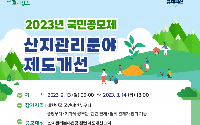 산림청은 산지 이용자의 불편을 덜고 산지관리정책에 국민의 의견을 반영하기 위해 오는 3월 14일까지 ‘산지관리분야 제도개선’ 국민공모를 실시한다. ‘산지 관리 분야 제도개선’ 공모제는 국민에게 불편을 주는 규제, 산지 개발 절차와 기준에