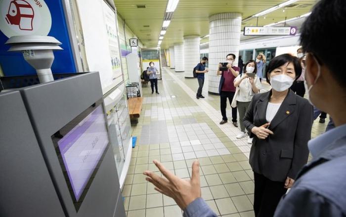 정부가 2027년까지 지하철역(지하역사) 승강장의 초미세먼지(PM2.5) 농도를 지금보다 17% 낮추기로 했다. 이를 위해 실시간 모니터링을 강화하고 집진 차량을 시범 운용한다. 지난해 9월 16일 한화진 환경부장관이 대표적인 다중이용시설인 서울 지하철 영등포구청