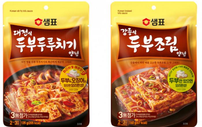 우리 맛 연구 중심 샘표가 지역 명물 두부 요리를 집에서도 쉽고 맛있게 만들어 먹을 수 있는 ‘대전식 두부두루치기 양념’과 ‘강릉식 두부조림 양념’을 출시했다.이번 신제품 2종 출시로 샘표는 기존의 안동찜닭 양념, 춘천닭갈비 양념, 부산자갈치 고등어조림 양념 등 모두