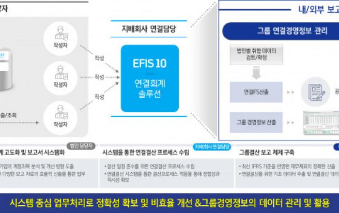 더존비즈온은 차세대 통합 연결결산시스템 ‘EFIS 10’으로 기업의 연결내부회계관리제도 대응을 지원한다고 12일 밝혔다.올해부터 연결자산 총액 2조원이 넘는 상장사는 새로운 외부감사법 시행에 따라 내부회계관리제도 구축, 운영을 연결그룹에 대한 연결재무제표 기준으로 확대