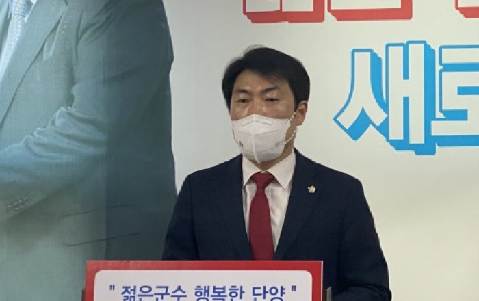 ▲ 김광표 군의원이 22일 단양군청 브리핑룸에서 6.1 지방선거에 단양군수로 출마하겠다고 공식 선언 기자회견을 하고 있다. (사진=유소진기자)김광표(47·국힘) 충북 단양군의원이 6.1 전국 동시 지방선거에 단양군수로 출마하겠다고 공식 선언했다. 김 의원은 2