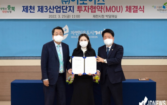 ▲ 제천시가 ㈜이노하스와 제3산업단지 공장 신설을 위한 투자협약을 25일 체결했다.충북 제천시는 금일(25일) 제천시청에서 푸드테크 스타트업인 ㈜이노하스와 제3산업단지 공장 신설을 위한 투자협약을 체결했다.이날 협약식에는 이상천 제천시장, 배동만 제천시의회 의장, ㈜이