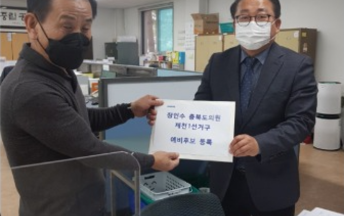 ▲ 25일 장인수 더불어민주당 전 정책위 부의장이 충청북도의회 제천 1선거구 도의원 예비후보 등록을 마쳤다. 더불어민주당 전 정책위원회 부의장 장인수(51)가 금일(25일) 충청북도의회 제천시 1선거구 도의원 예비후보 등록을 마쳤다.장 예비후보는